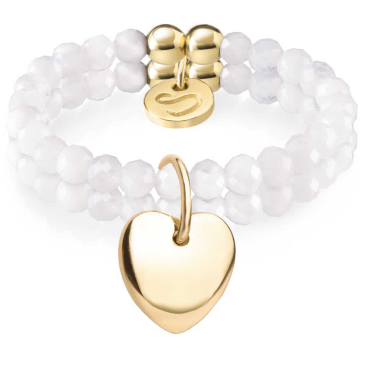 • Комплект каблучок з міні намистин місячного каменю з шарміком на петельці «Серце»